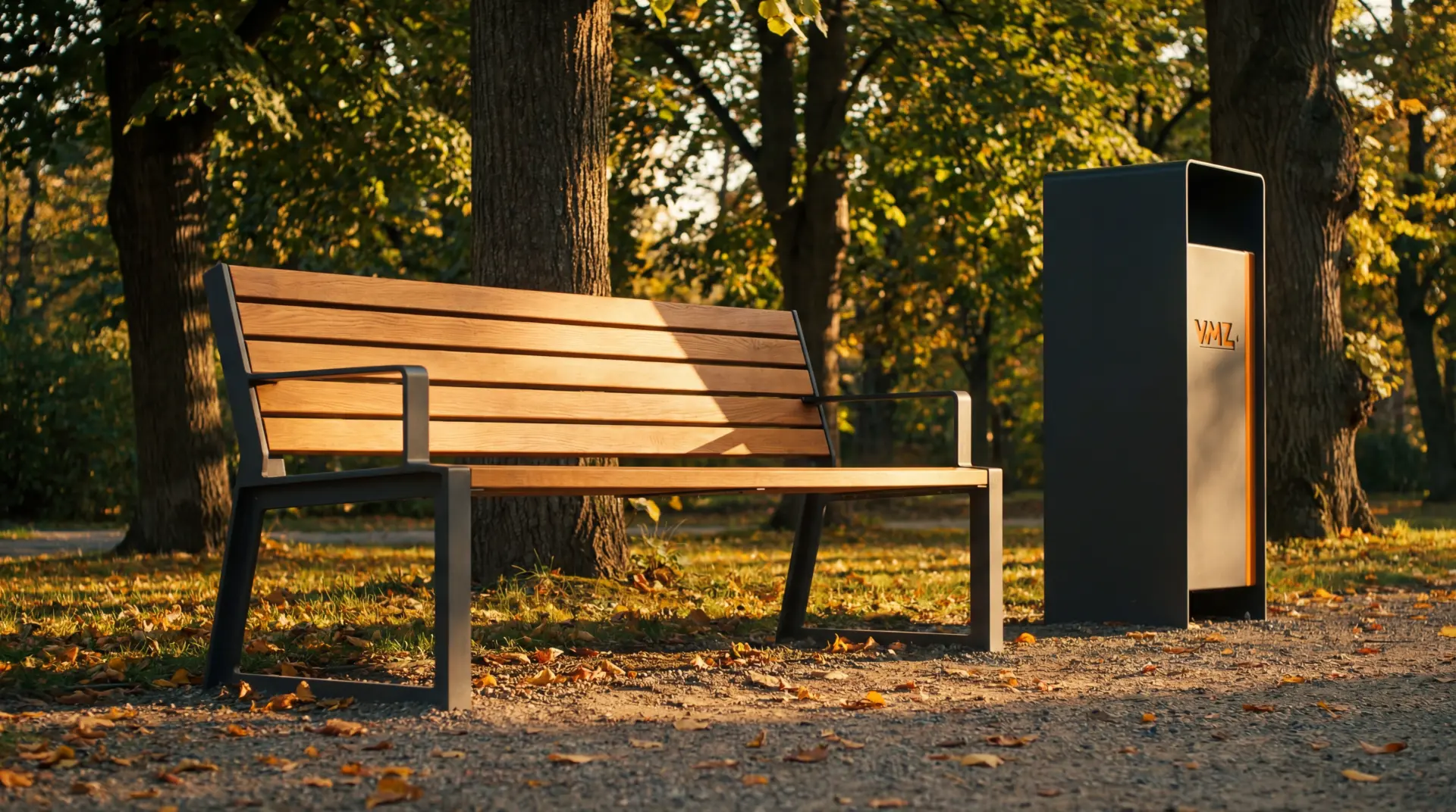 Klassische, extrem robuste Sitzbank mit widerstandsfähigem Stahlgestell (verzinkt oder lackiert) und hochwertiger Holzbelattung. Wetterfest, ergonomisch geformt und ideal für den dauerhaften Einsatz im Freien.